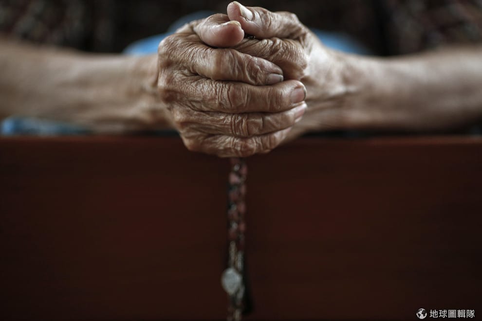 在菲律賓某間教堂裡,一名信徒正誠心祈禱著。
