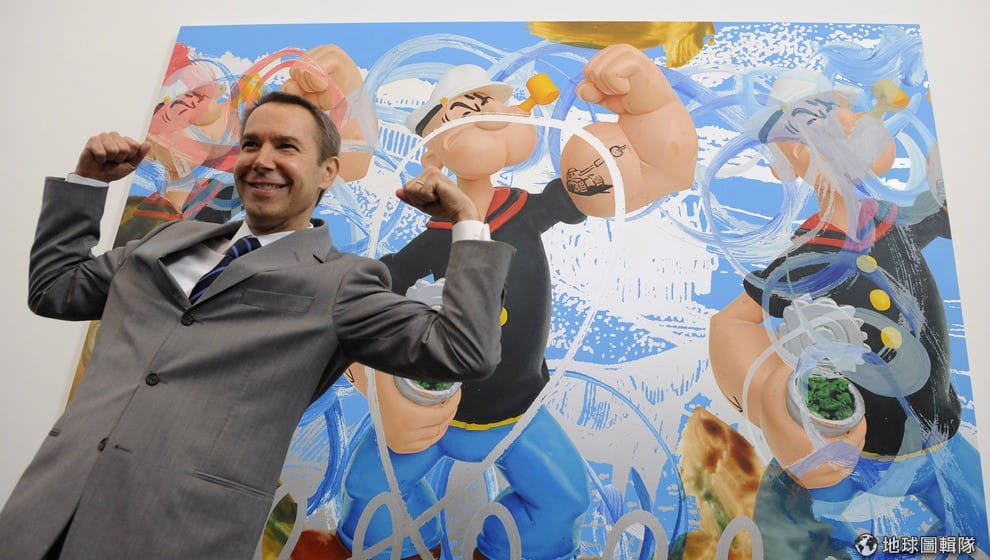 照片中開心舉起雙臂的就是藝術家傑夫昆斯。