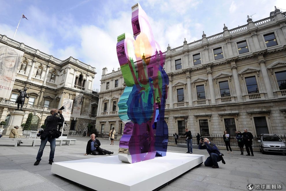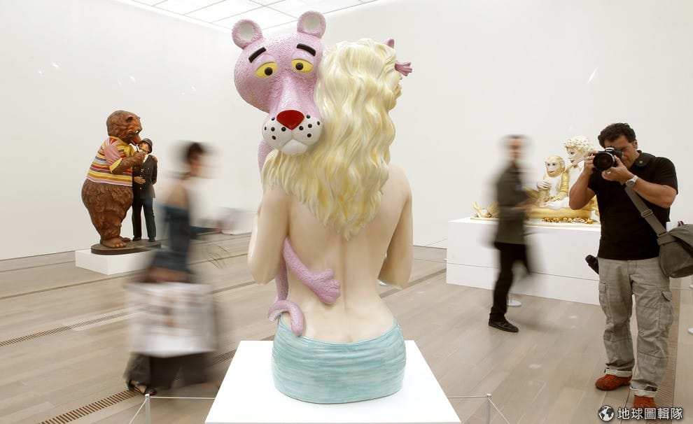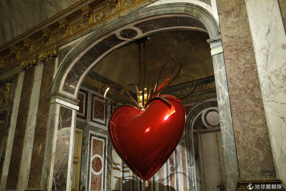 照片中的藝術品正在法國凡爾賽宮展出,這件展品在2007年時以2,300萬美元(折台幣約6.88億元)成交,創下在世當代藝術家作品的最高成交價。