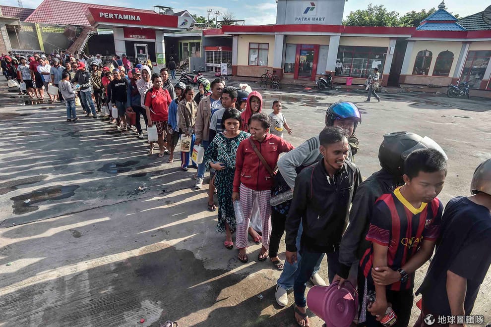 30號在帕盧市,人們正在排隊領取燃料。現在對當地居民來說,他們最需要的自然是水、電等基本物資。