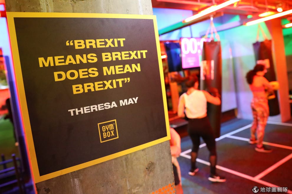 在健身房角落,掛著梅伊曾經說過、被反覆傳誦的句子:「英國脫歐就是英國脫歐,它真的意味英國要脫離歐盟。」