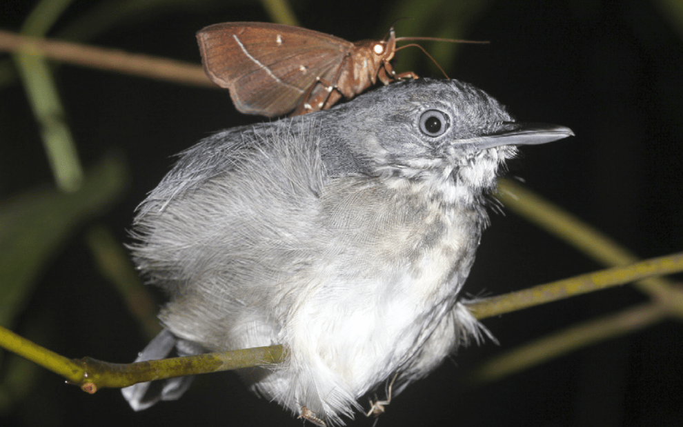 近日,巴西國立亞馬遜研究所的生態學家莫萊斯(Leandro Moraes)發現,住在亞馬遜叢林中的一種蛾(Gorgone macarea)會偷偷喝黑頦蟻鳥(black-chinned antbird)的眼淚來補充鹽分和蛋白質,這是科學界第一次在巴西發現蛾類出現這樣的行為,也是全世界第三次觀察到蛾在喝鳥的眼淚,第一次是 2007年在馬達加斯加,第二次則是 2015年在哥倫比亞。