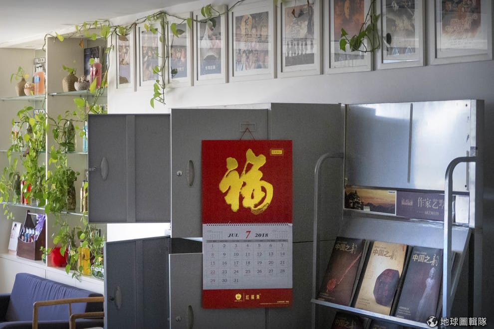 隔著窗戶,攝影師捕捉下范冰冰工作室的模樣。