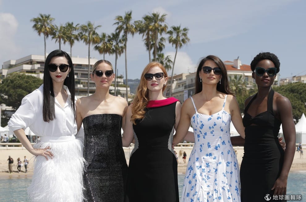 今年 5月,范冰冰參加了第 71屆坎城影展,畫面中從左到右分別是范冰冰、瑪莉詠·柯蒂亞(Marion Cotillard)、潔西卡·雀絲坦(Jessica Chastain)、潘妮洛普·克魯茲(Penelope Cruz)、露琵塔·尼詠歐(Lupita Nyong'o)。