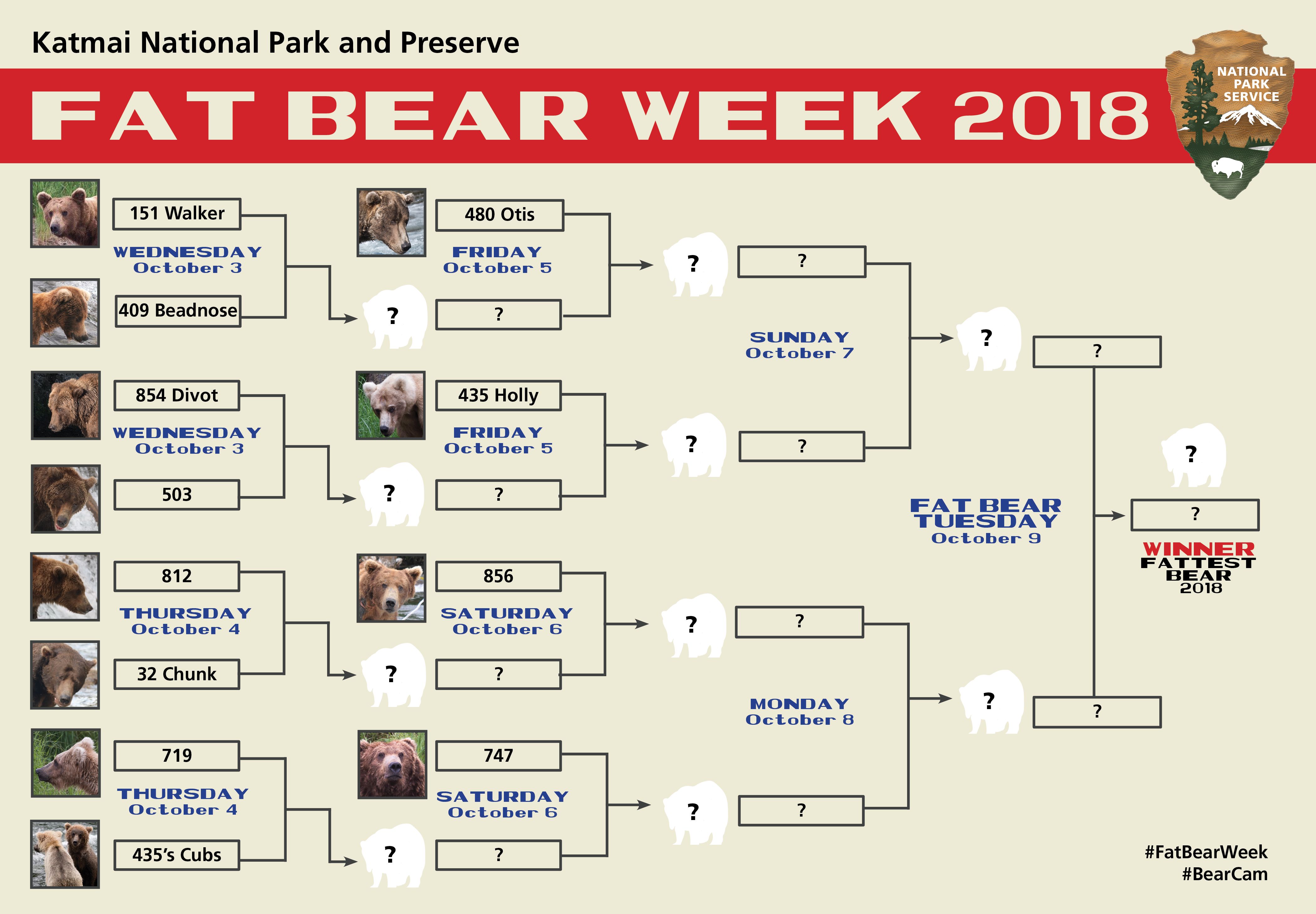 第一屆「胖熊爭霸周」是在2014年,當時國家公園管理員邀請每名遊客針對「哪隻熊最胖」來投票,從隔年開始,國家公園便把活動搬到社群網路上,以為期一週的網路錦標賽進行。