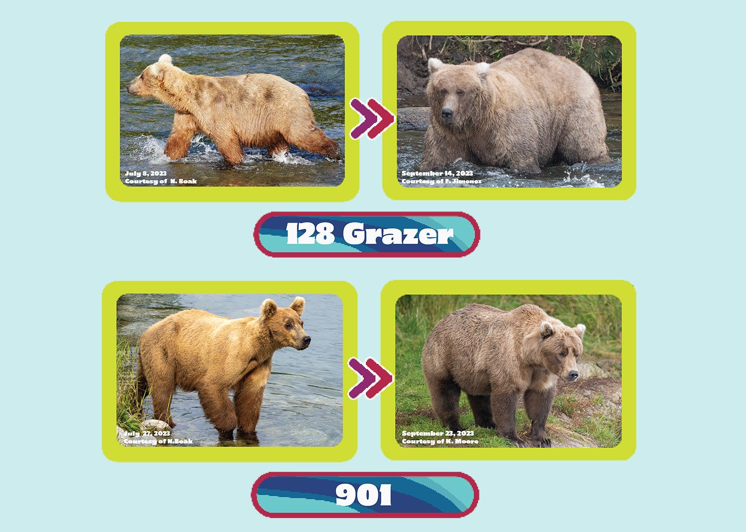 Grazer與Chunk從7月到10月戰績,兩熊已經不是第一次在決賽舞台交手了。(熊圖來源:Katmai National Park & Preserve/製圖:地球圖輯隊)