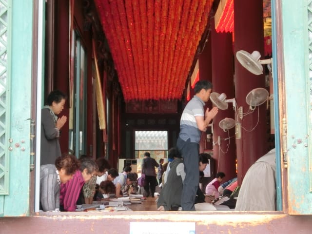 網友Pnina首爾市民們在大雄殿內虔誠地禮佛祈禱。