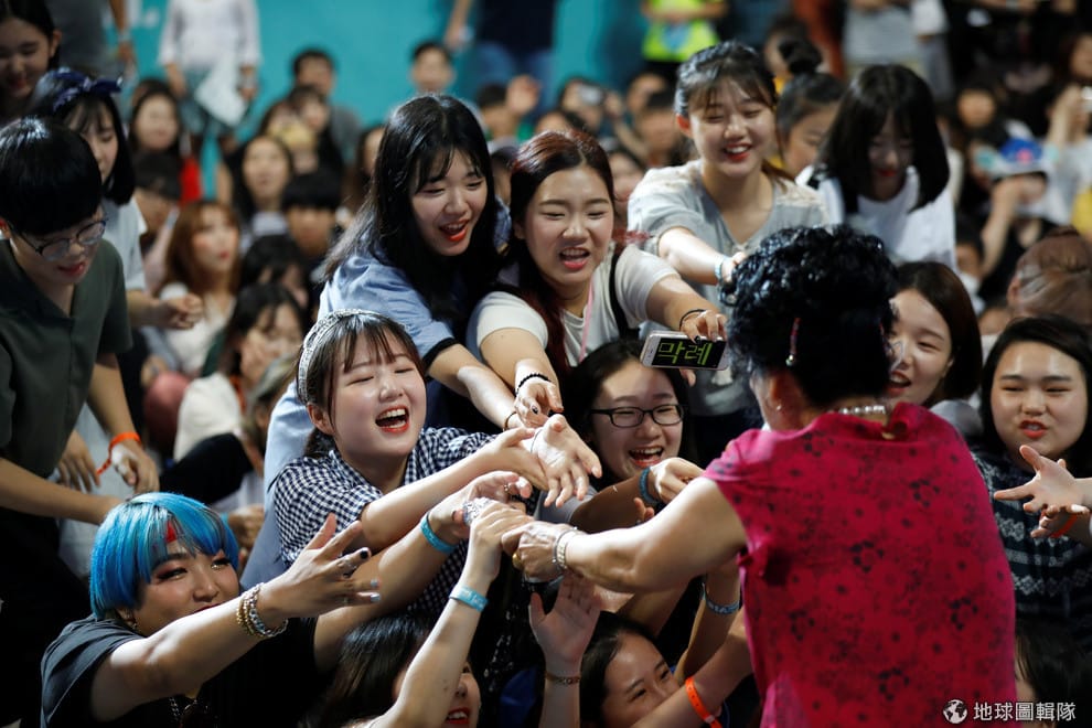 圖為 2017年7月,南韓YouTuber「美妝奶奶」朴寞禮(音譯,Park Mak-rye)的粉絲見面會。