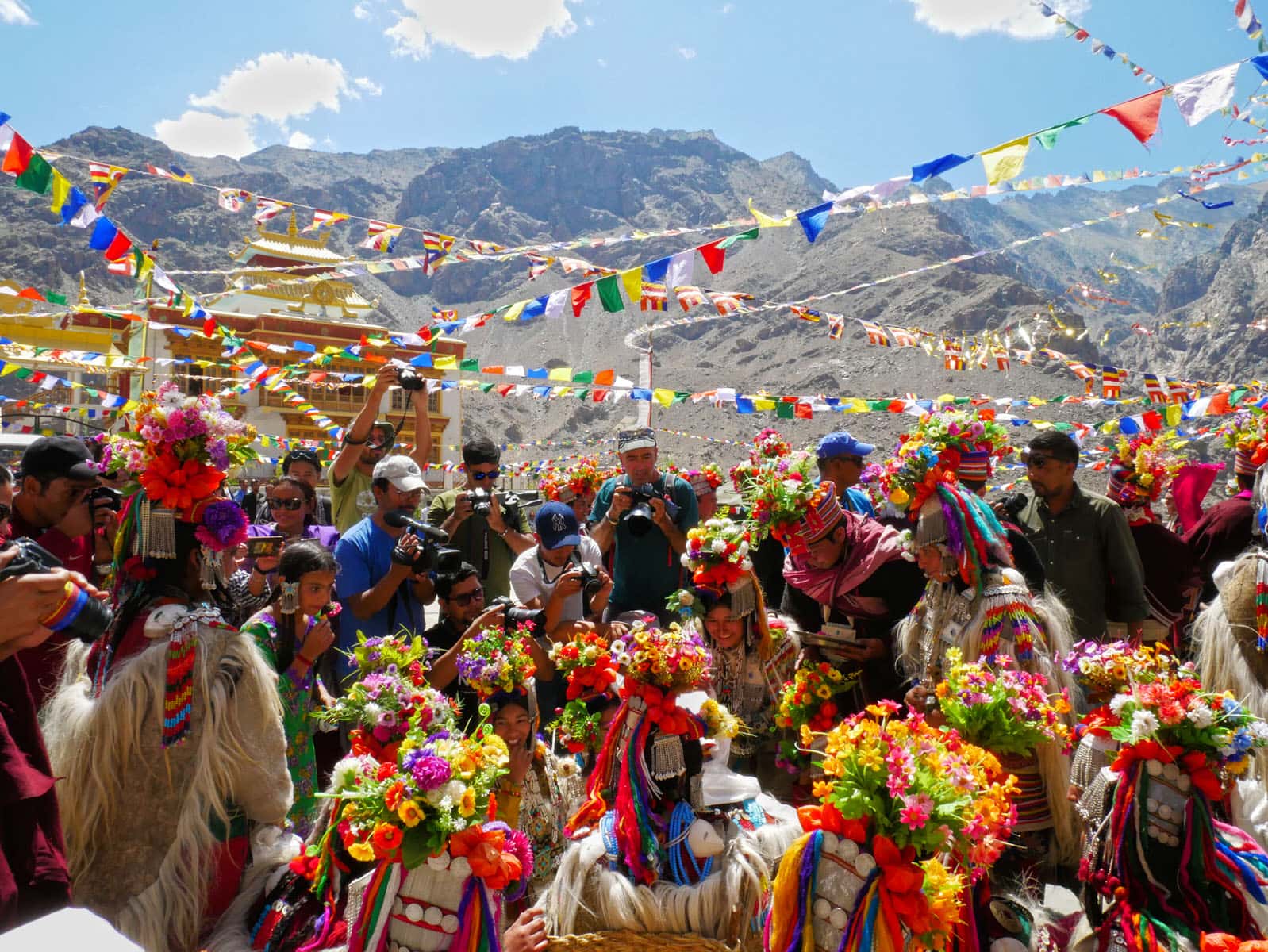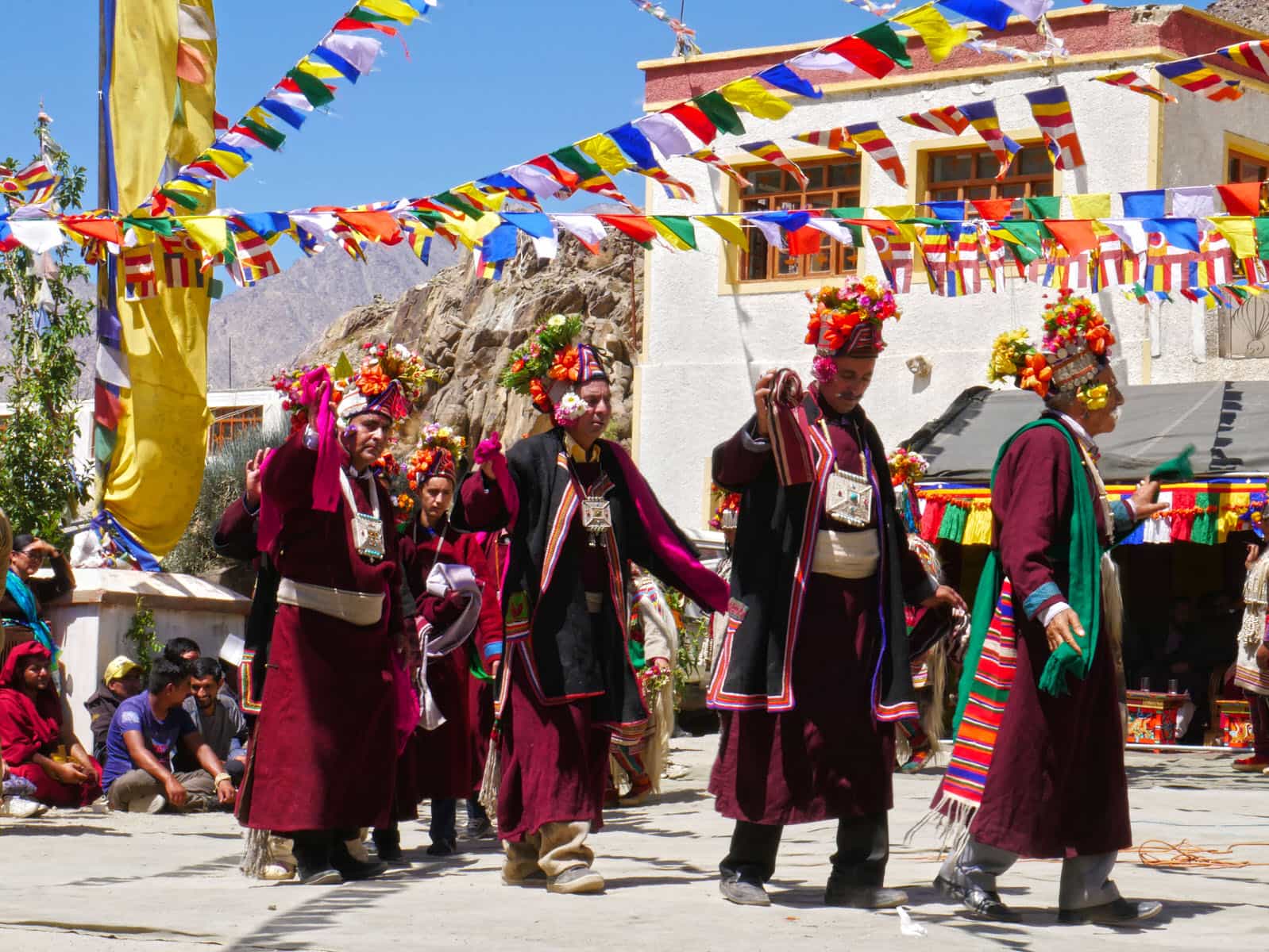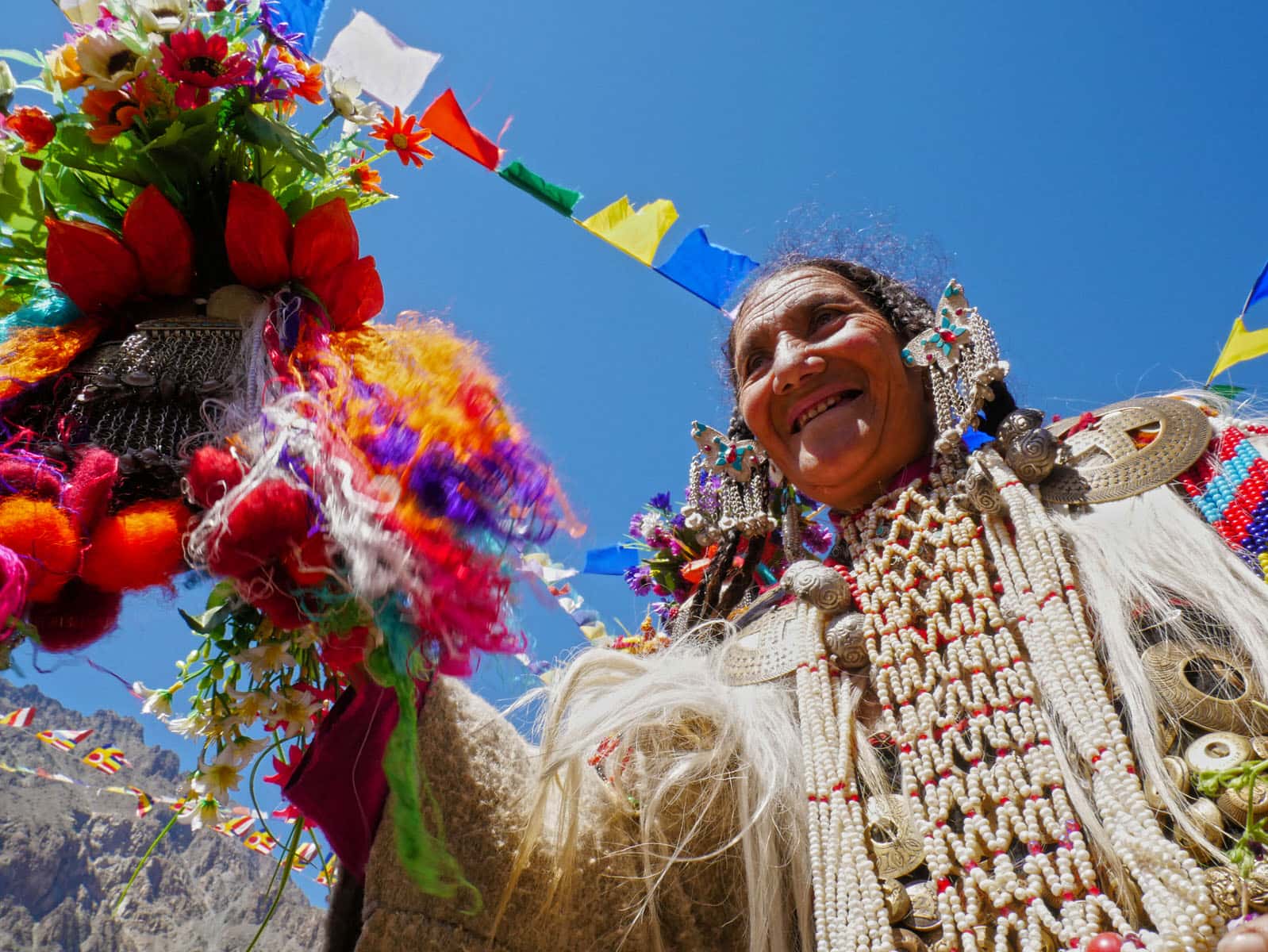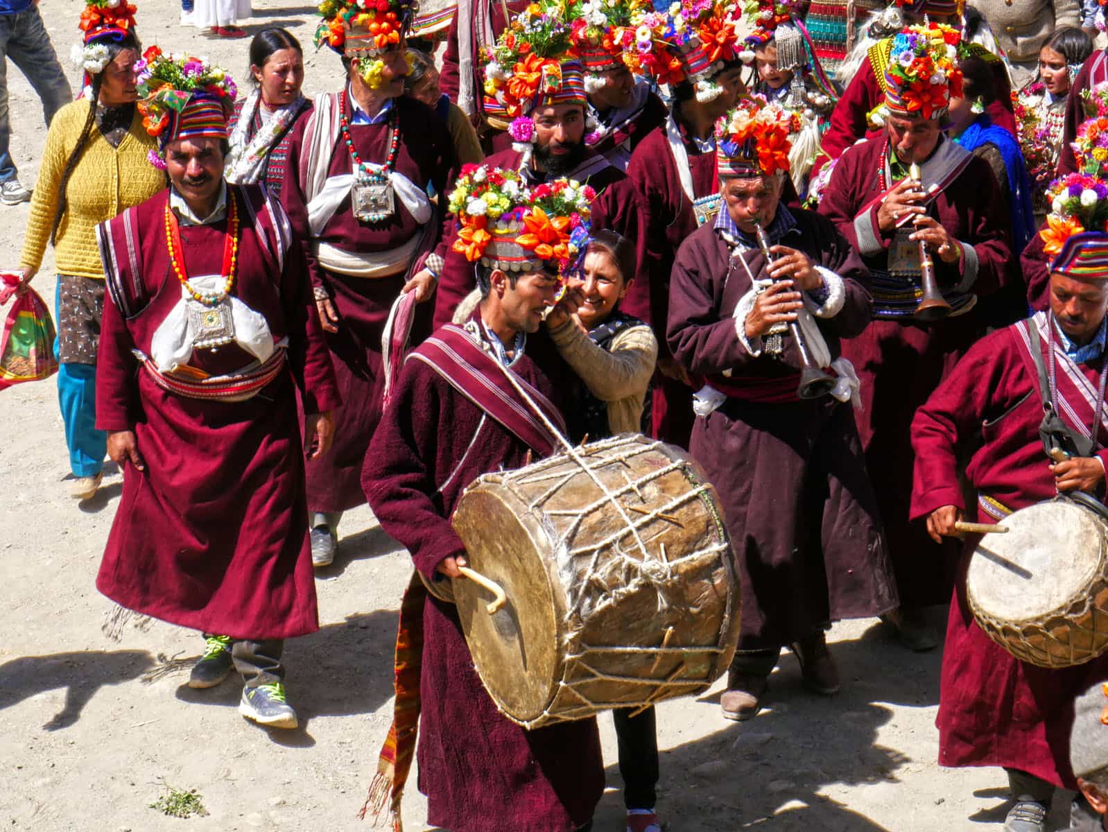 慶典當天,雅利安人無論男女老少,頭上都戴著花飾、穿著鮮豔,好來迎接這專屬雅利安人的慶典。由於雅利安人信仰多為藏傳佛教,故此在衣著穿戴上,以藏族的「白、藍、紅、黃、綠。」五種配色為主。首飾細節部分,項鍊與髮飾多以白銀、黃金與古錢打造,最後鑲上當地的綠松石,形成獨一無二的飾品。