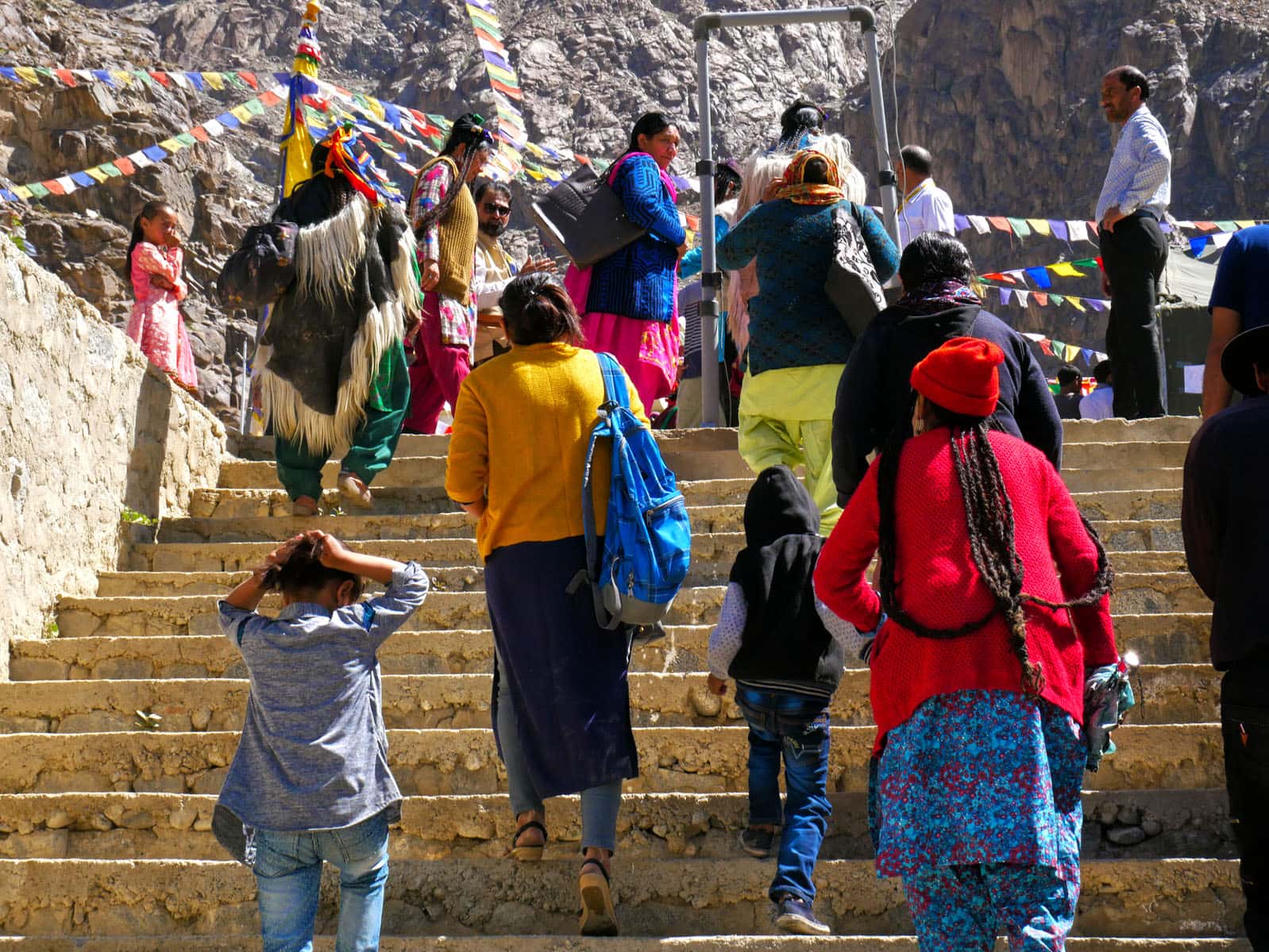 網友賴文薇「在慶典開始前,我試著 Google 搜尋相關資訊卻一無所獲。」一位來自斯洛伐克的攝影愛好者和我聊起他到拉達克後的大小事。我與他在慶典外的階梯旁相遇,而他剛好在等待願意被拍攝的當地人。雅利安慶典光是今年就集結了來自法國、英國、斯洛伐克、日本、臺灣等國家的遊客與攝影愛好者。