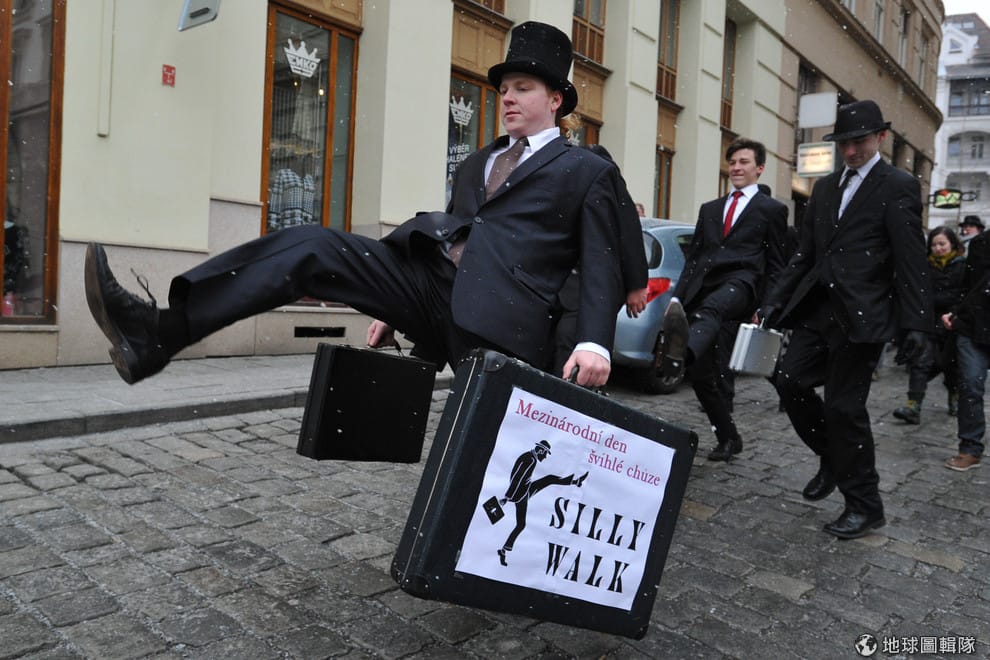 近日,如果你到荷蘭鹿特丹大都會區的斯派克尼瑟(Spijkenisse)小鎮走一遭,或許會發現大家在過斑馬線時走路的姿勢特別不一樣:上身直挺挺、下身滑稽地跨大步,有趣搞笑的動作讓人看了噗哧一笑。不過,這種招牌走法可不是隨便亂走,而是來自 1970年代BBC紅極一時的喜劇節目《蒙提·派森的飛行馬戲團》(Monty Python's Flying Circus)。