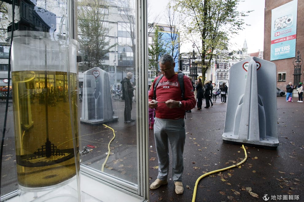 2013年,在荷蘭阿姆斯特丹街頭,當局把街頭小便斗收集到的尿液集中在一起,