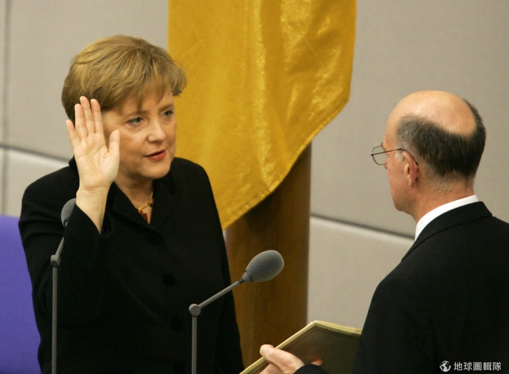 圖為 2005年,梅克爾宣誓就任為德國總理。