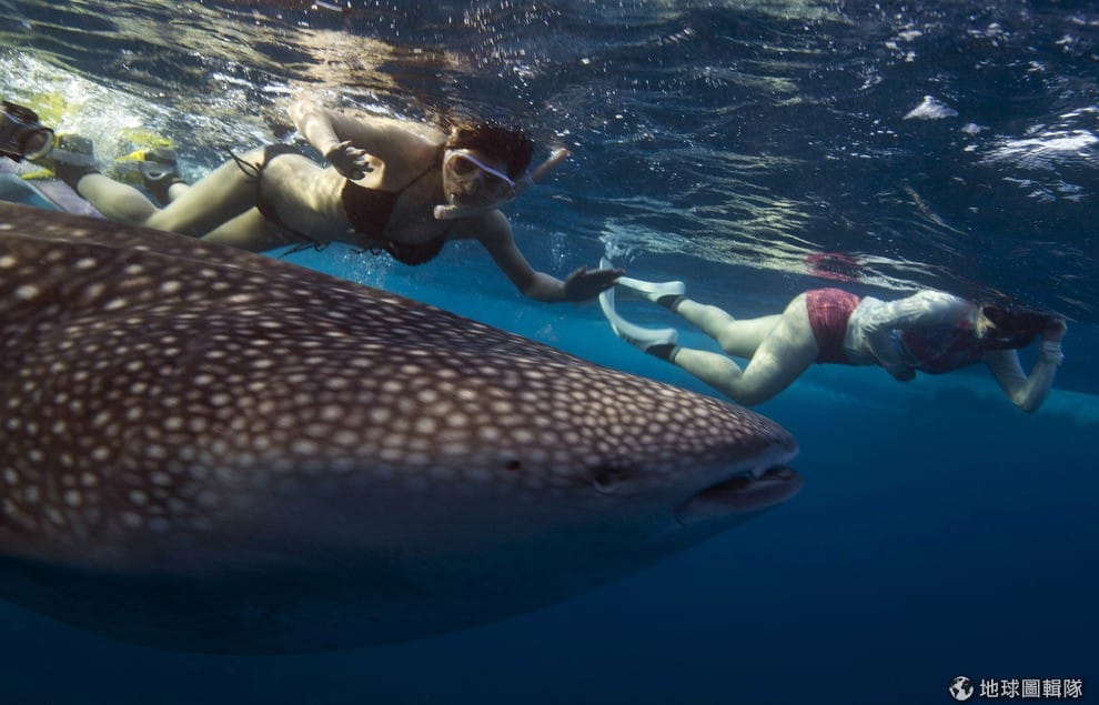 潛水客在水裡和世界上最大的魚類「鯨鯊」一起度過炎炎夏日。