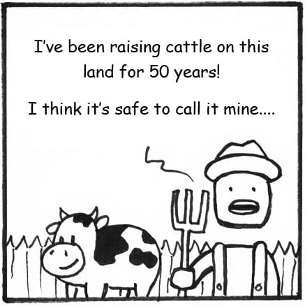 漫畫中的人物說道:「我在這塊土地養了 50年的牛。我想我應該可以說這塊土地是我的......」。「逆權侵佔」就是源自這樣的概念。