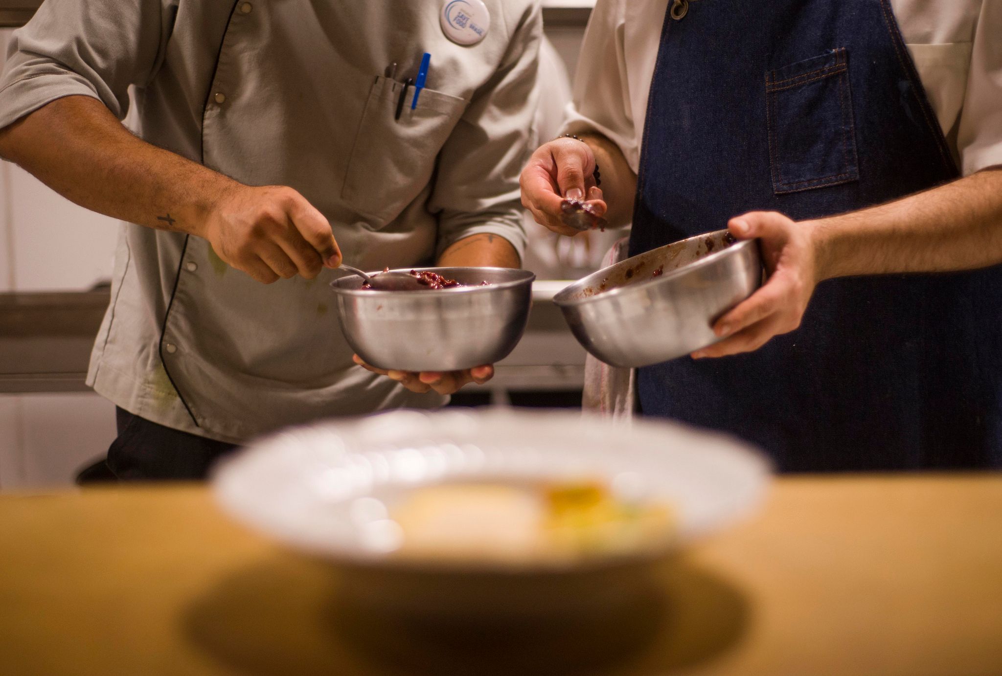 圖為 2017年6月,在Refettorio Gastromotiva餐廳後場準備甜點的廚師們。