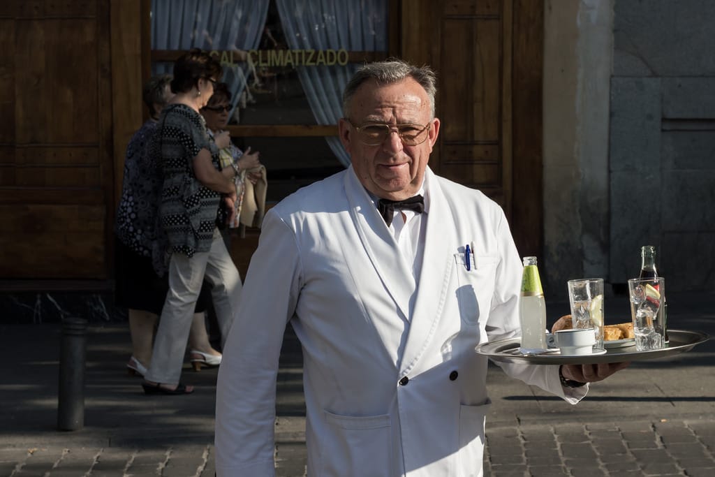 在歐洲國家,要在餐廳中看到「資深」服務生的機會不少,他們往往很享受和顧客的互動。