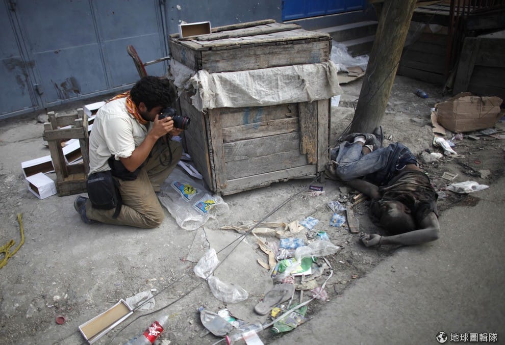 路透社攝影師巴利亞(Carlos Barria)對著路旁倒臥在木箱邊的遺體拍照,海地當地在2010年發生嚴重的大地震,甚至當時也引發了大海嘯,在當地釀成嚴重傷亡。