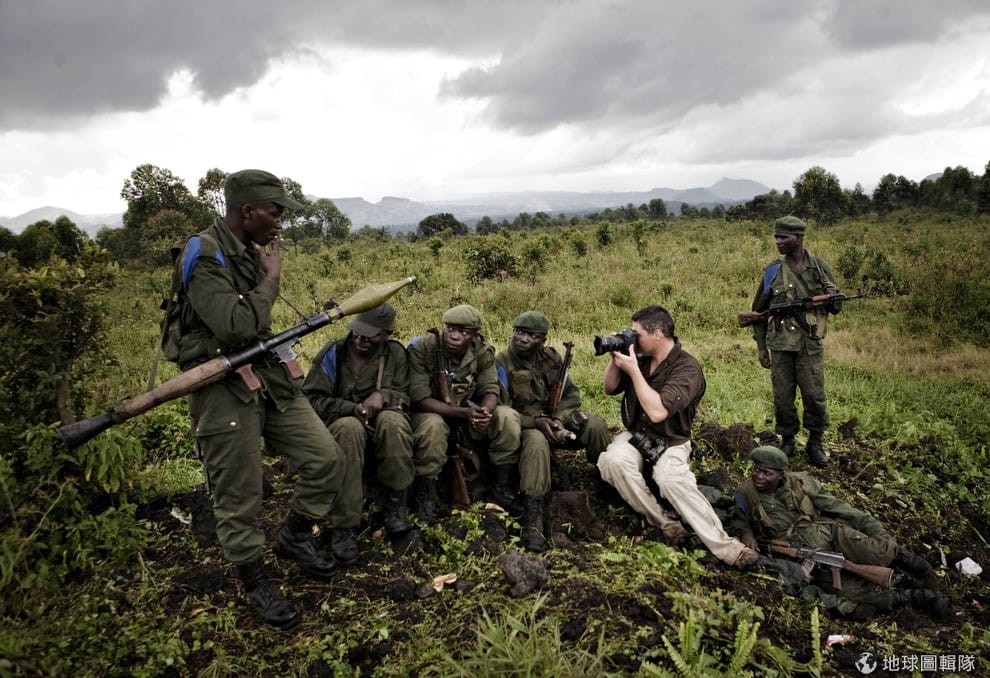 路透社首席攝影師歐萊利(Finbarr O'Reilly)正在拍攝當地的政府軍。這是他在2008年時,在剛果當地最後一次拍攝任務。