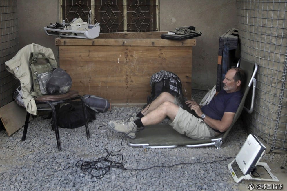 路透社攝影師史壯(Bob Strong)正在工作,他和美軍一同在阿富汗的阿甘達博谷(Arghandab Valley)行動。