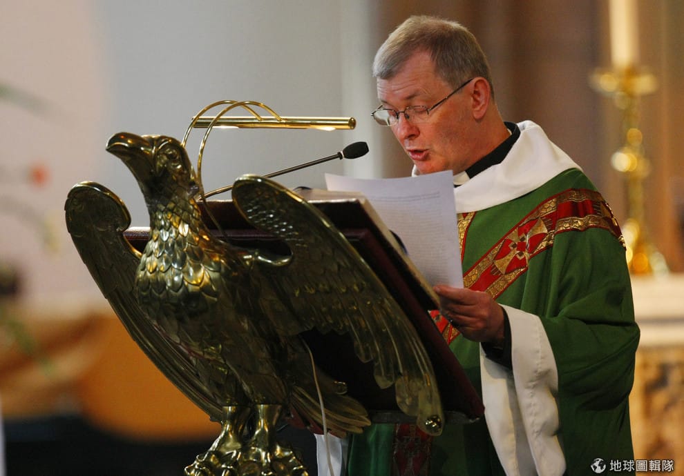 2012年8月在聖馬利亞座堂的彌撒上,神父哈里斯(Peter Harris)正在宣讀來自蘇格蘭主教的信件。這封信同時發給了 500個教區,表達教會對蘇格蘭政府打算推動同性婚姻的決定「非常失望」。
