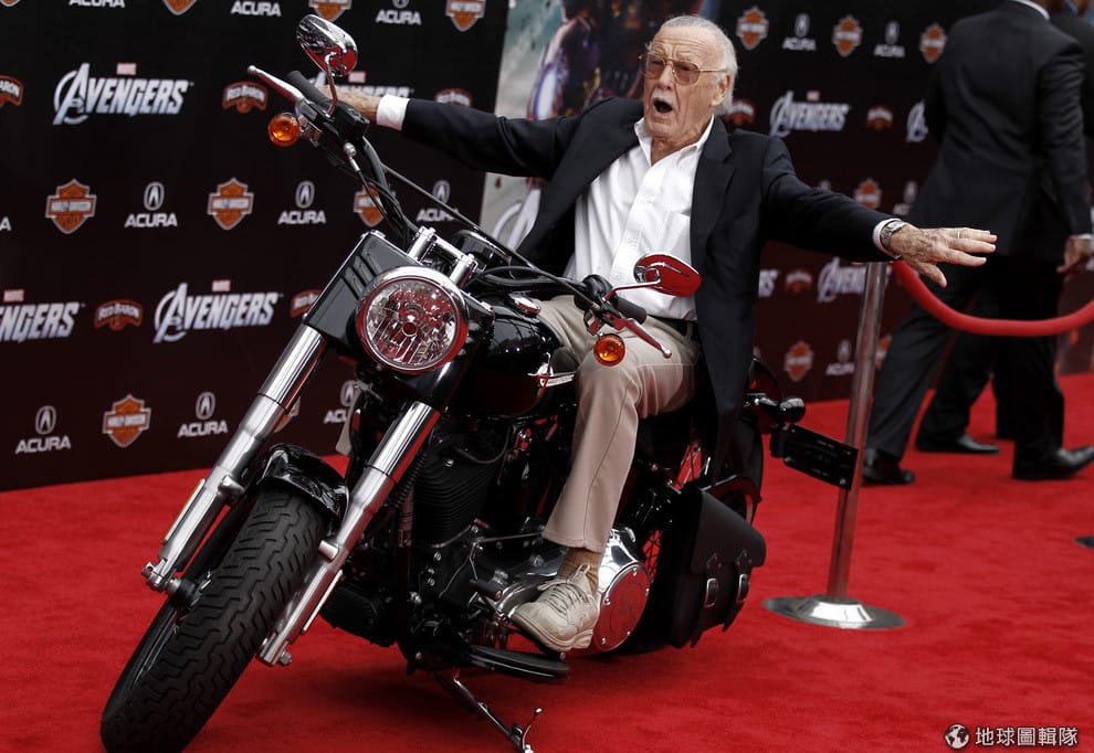 2012年4月在電影《復仇者聯盟1》的首映會上,史丹李坐在美國隊長的招牌座駕哈雷摩托車接受合影。