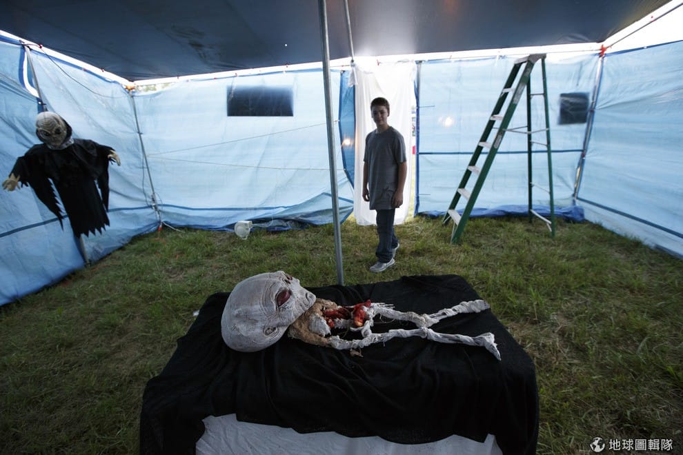 路透社活動現場還有架起外星人解剖的模擬現場。