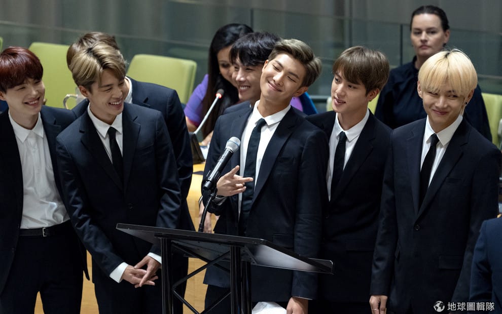 圖為今年 9月,南韓音樂團體BTS防彈少年團出席第 73屆聯合國大會,針對青少年發展議題發表演說。他們是第一組登上聯合國大會的南韓音樂團體。