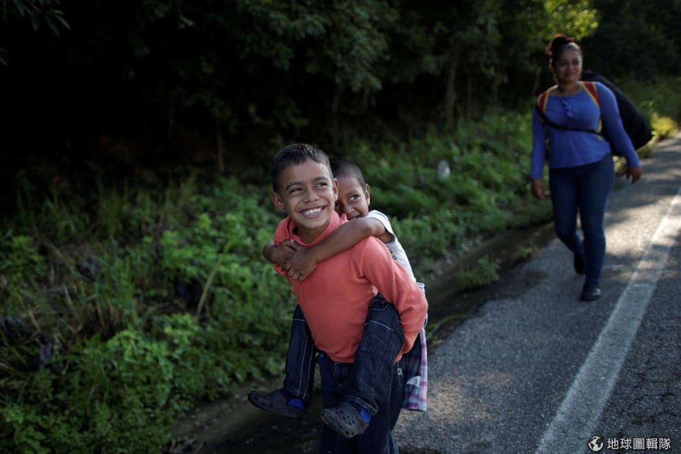 加入跋涉行列的小男孩阿多奈(Adonai)和丹澤爾(Denzel)睡眼惺忪,他們一個今年 5歲,一個今年 8歲,兩人緊緊地跟著今年 33歲的媽媽艾絲可巴(Glenda Escobar)。