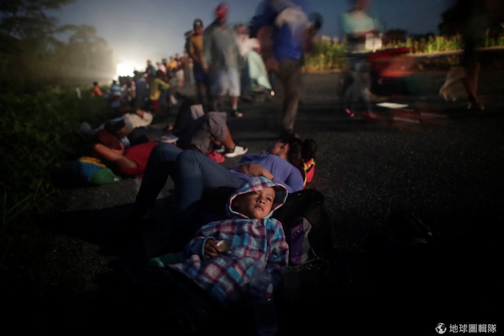地球圖輯隊凌晨四點,躺在地上的阿多奈睜開眼睛,已經有許多來自中美洲的車隊移民起床開始趕路。