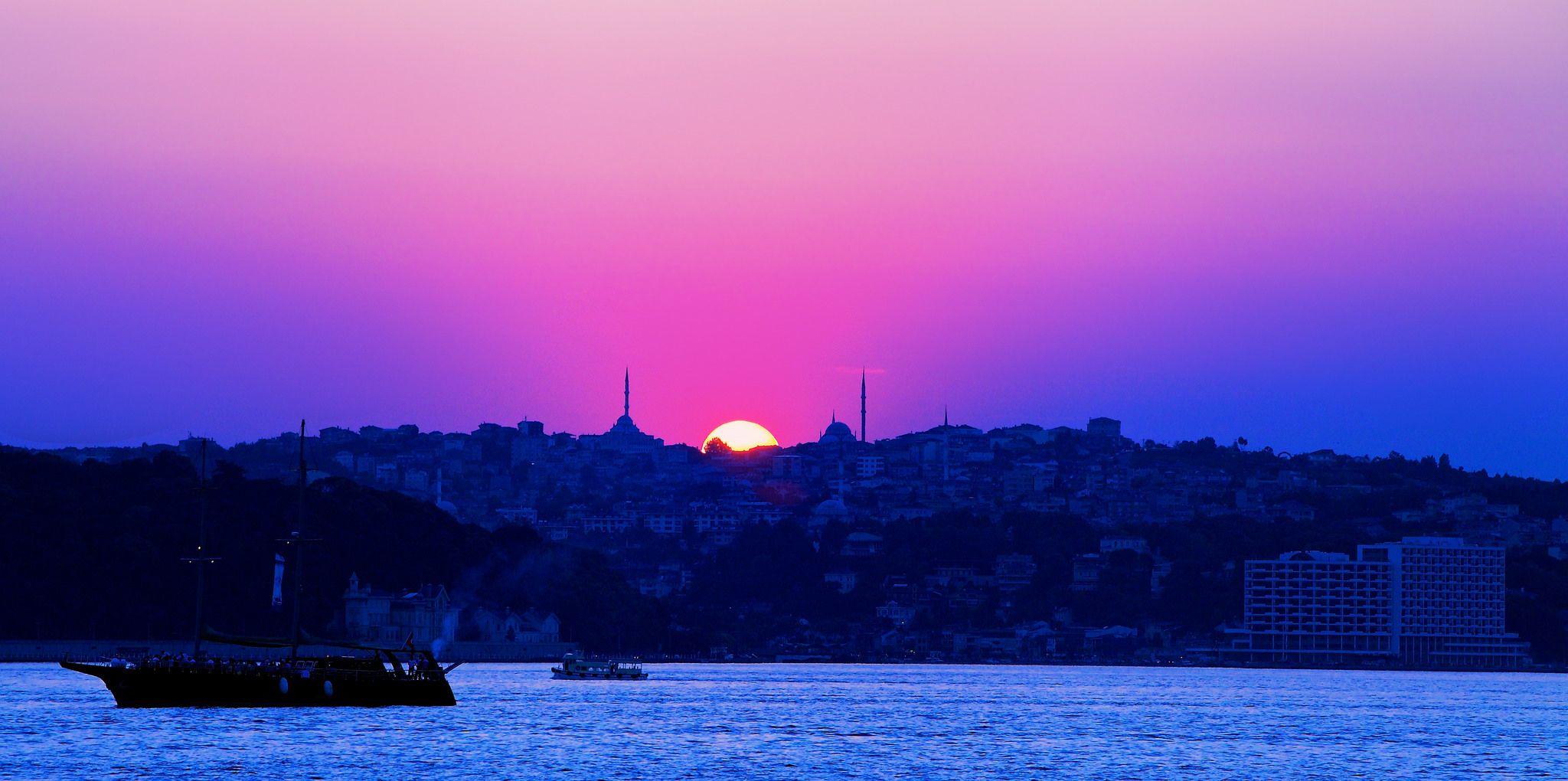 在土耳其伊斯坦堡,夕陽西亞的博斯普魯斯海峽令人百看不厭。