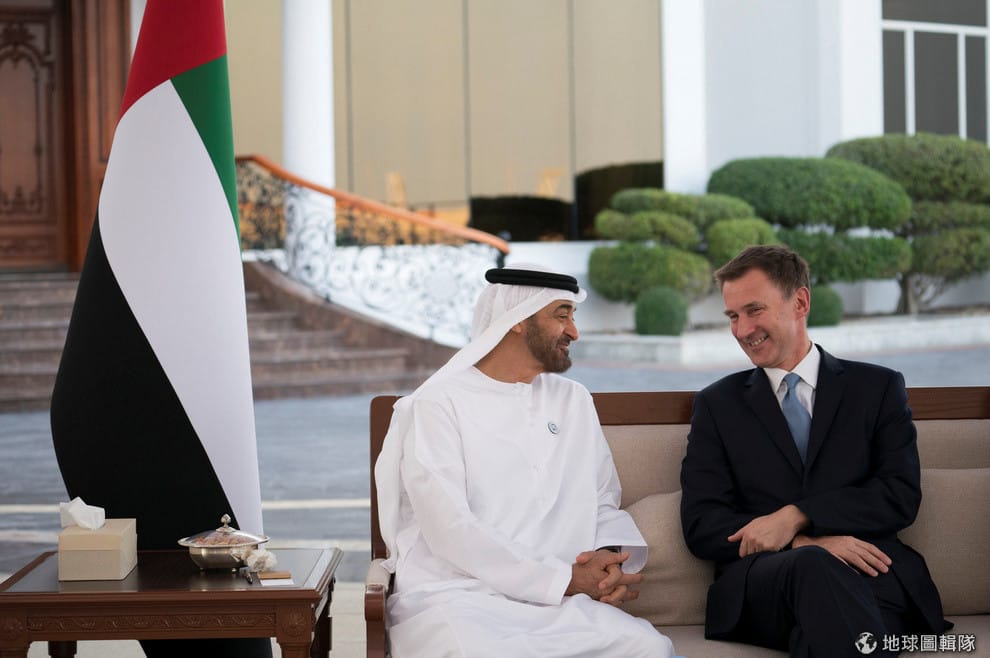 12號時,英國外交大臣杭特曾出訪阿聯,並和阿布達比王儲阿勒納哈揚(Sheikh Mohammed bin Zayed al-Nahyan)見面。