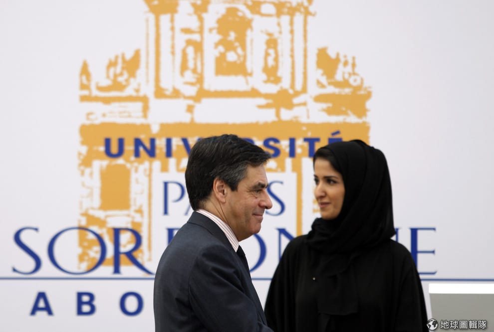 2011年,時任法國總理的費雍(Francois Fillon,左)來到巴黎索邦大學阿布達比分校參加啟用典禮。近年來,阿聯不斷砸錢邀請國際著名大學來當地設立分校。