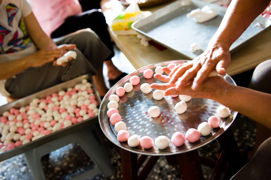 6. 搓圓:把粿粹分切成段,包餡後再逐個搓成圓球,湯圓就完成囉!
