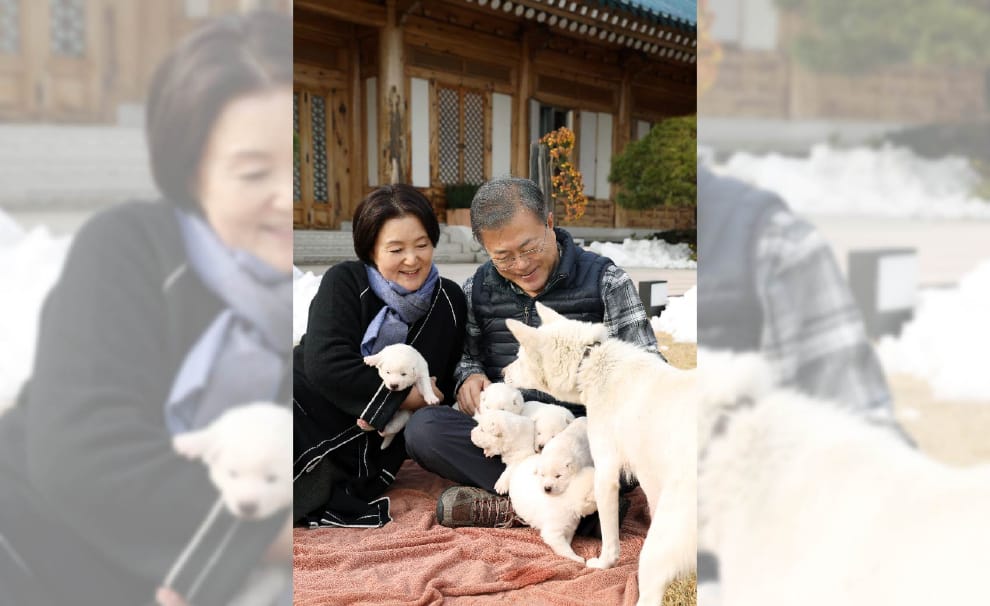 25號這天,南韓總統府青瓦臺釋出了兩張照片,裡頭拍下了南韓總統文在寅和妻子金正淑抱著一堆奶白色小狗,這六隻小狗來自北韓領導人金正恩在今年 9月送給文在寅的豐山犬Gomi,牠們是Gomi在 9號生下的小孩,總共三男三女。