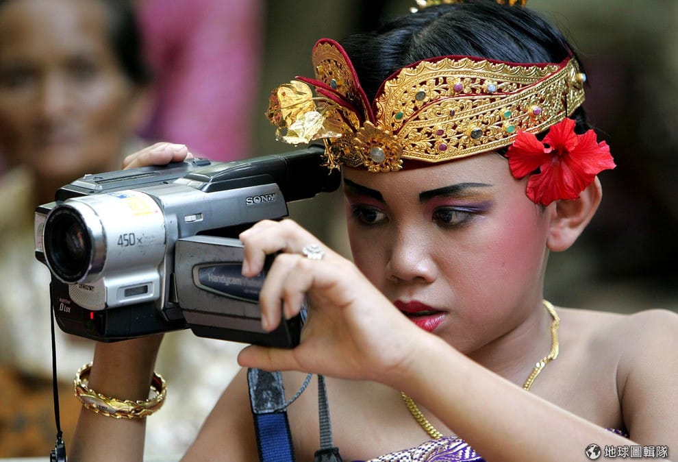 路透社前公主Tjkorda Istri Muter的曾孫在儀式期間拿著錄影機到處記錄。