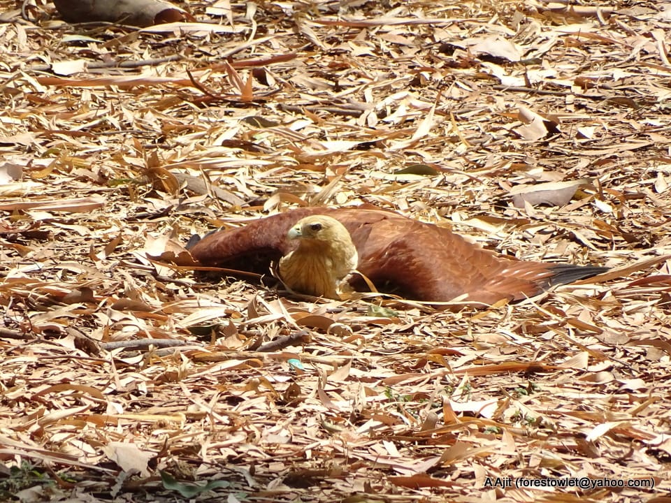 畫面中張開雙翅的栗鳶,就是在享受螞蟻浴的時光。