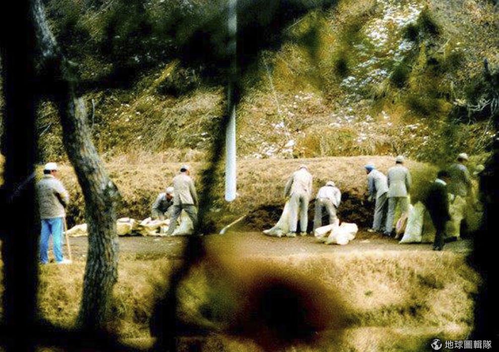 圖為 1986年12月,由南韓蔚山(Ulsan)檢方提供的照片中,記錄下被收容於兄弟福祉院的成年人在蔚山某處的建築工地工作。