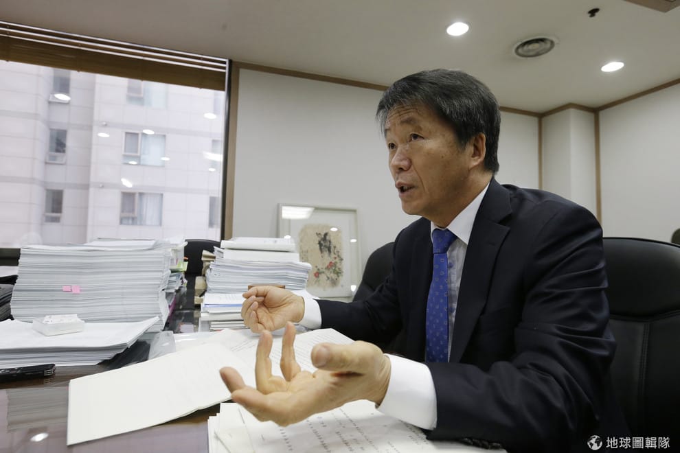 圖為 2014年12月,前檢察官金永元在首爾的辦公室接受採訪。他曾經潛入兄弟福祉院展開調查,但在調查期間遭上級施壓。