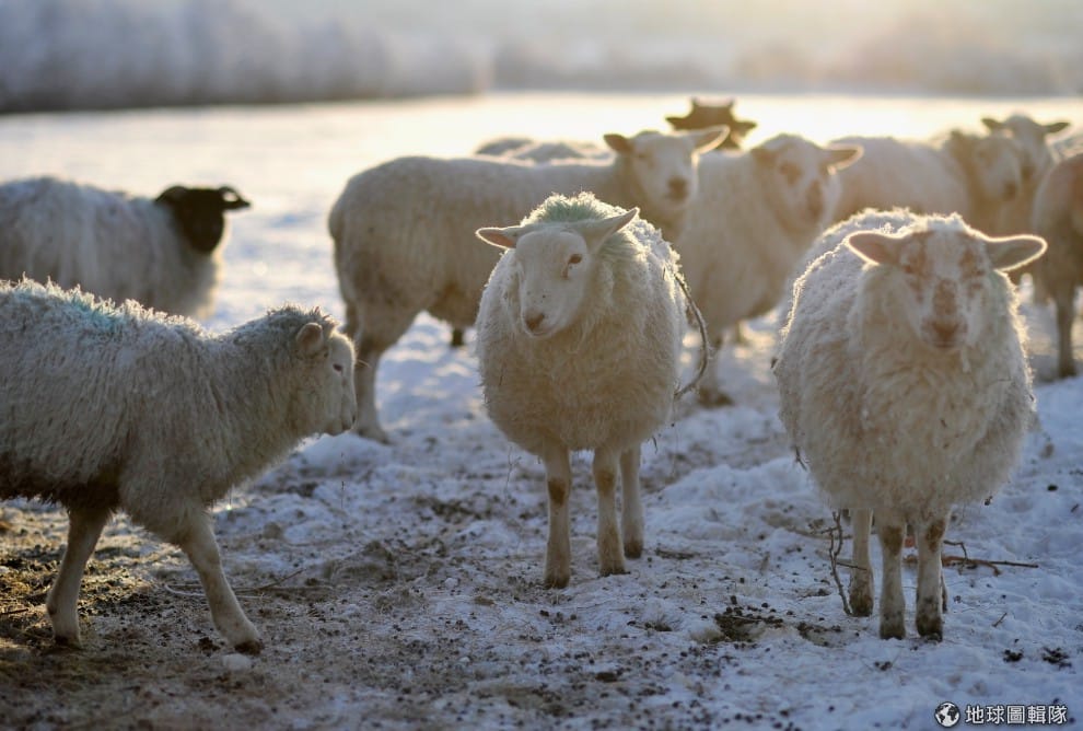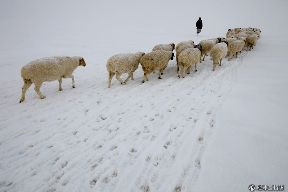 大風雪中的羊群全擠在一團,牧羊人在這樣的天氣下放牧,不知道會想些甚麼呢?圖片來源:Paula Bronstein/Getty Images