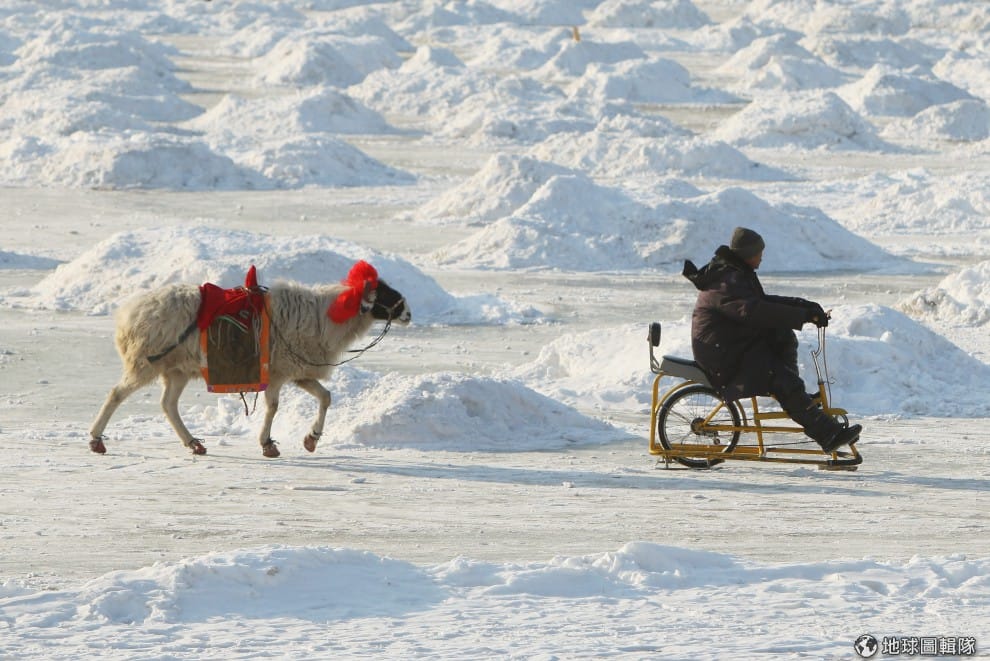 北京結凍的湖面上,老人家正騎著腳踏車「溜羊」去!圖片來源:Feng Li/Getty Images