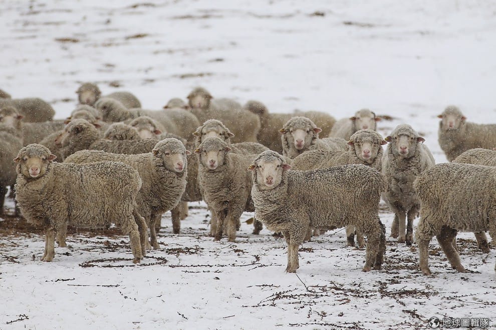 南北半球大不同!照片中的紐西蘭是8月份喔,當地正是寒冷的冬天呢!不過這邊的綿羊警戒心好重!馬上就發現攝影師的鏡頭了!圖片來源:Hannah Johnston/Getty Images