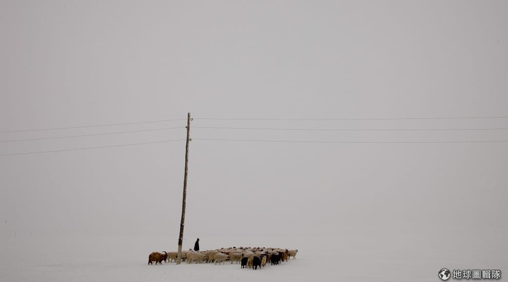 蒙古正處在一波接著一波的大風雪中,牧羊人和他的羊群只能在凜冽的天候中緩慢前進。圖片來源:Paula Bronstein /Getty Images