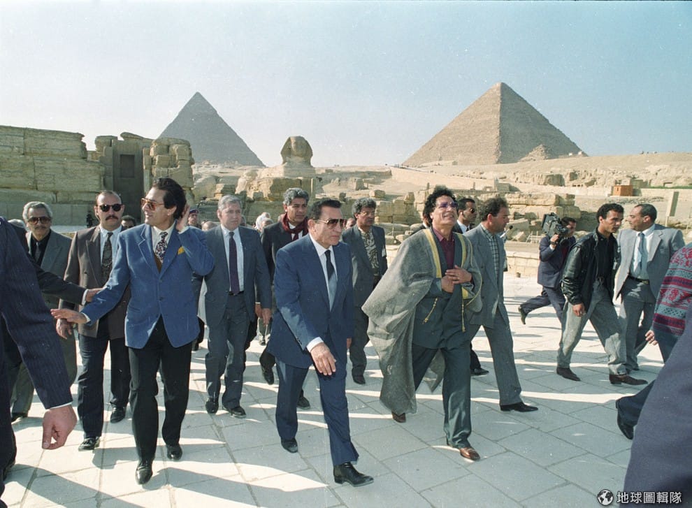 照片中走在前方的是穆巴拉克,他與前利比亞領導人格達費走在一塊,格達費是阿拉伯世界中執政最久的領導者,掌權有42年之久。