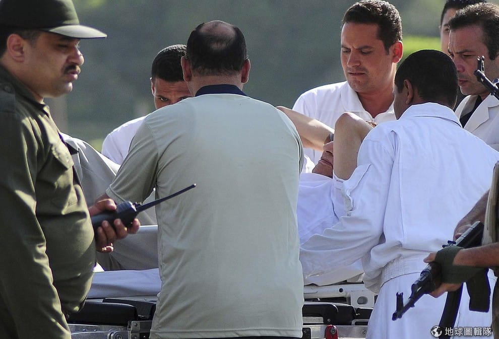 BBC、《時代雜誌》綜合報導,埃及前總統穆巴拉克在當地時間周四(22)獲得保釋出獄,這位年屆85歲,目前受到疾病纏身的獨裁者在直升機的護送下轉往開羅當地的軍醫院。照片中躺在病床上的就是現年85歲的穆巴拉克