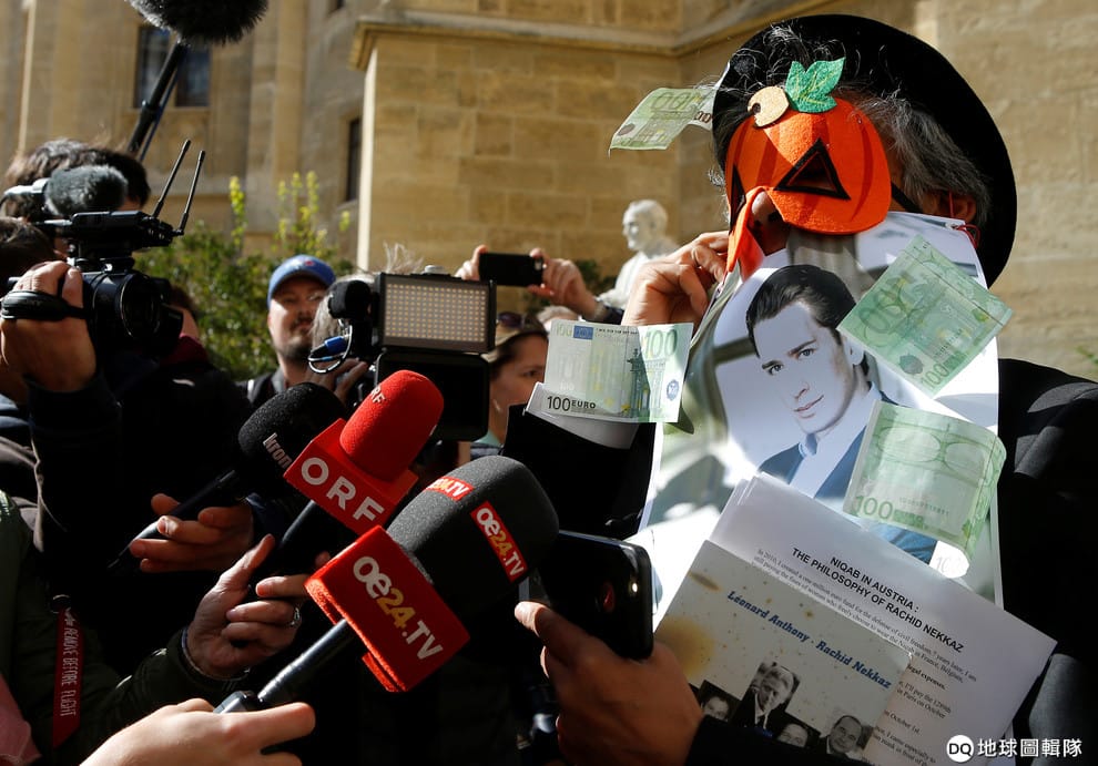 2017年10月,在遭逢當時的奧地利外交部長庫爾茨警告時,聶卡斯戴上了自製的面罩來表達不滿。