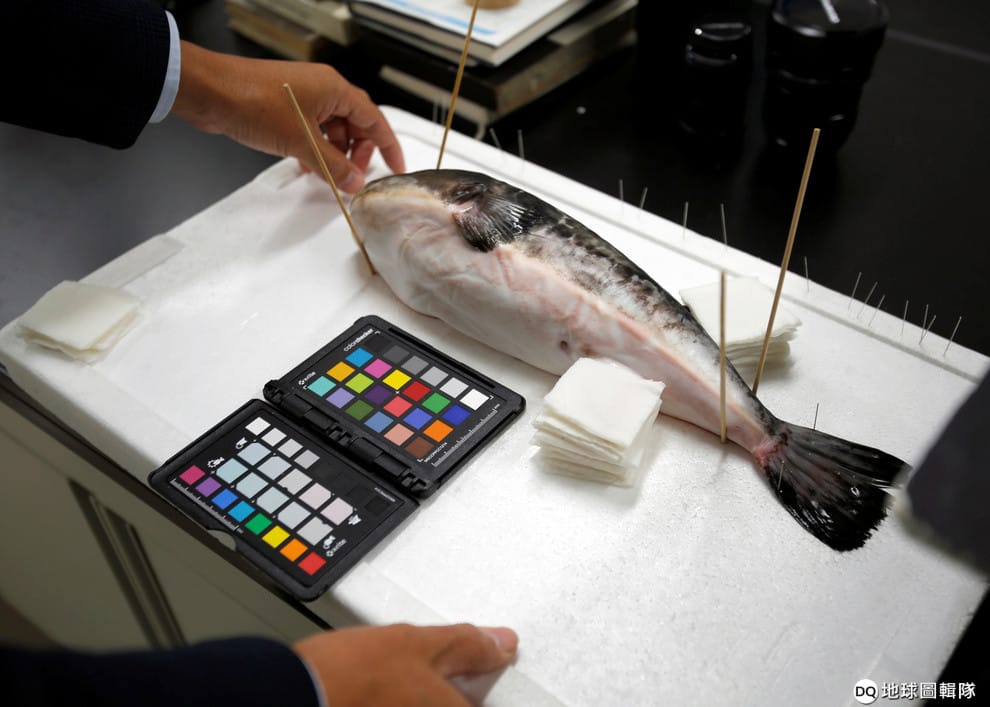 圖為今年 11月,高橋洋副教授在實驗室正在檢查一隻雜種河豚。