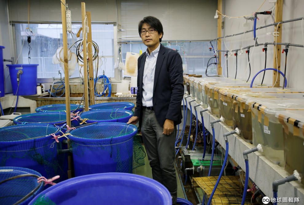 圖為今年 11月,在日本山口縣下關市,水產大學校生物生產學科的高橋洋副教授在實驗室裡接受記者採訪。