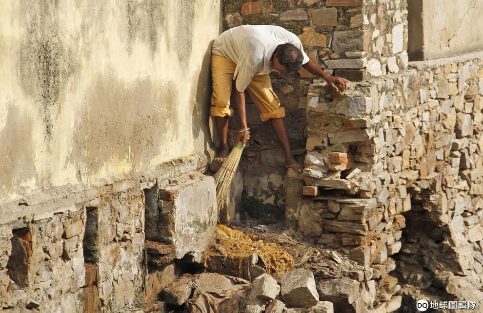 圖為 2014年8月,在印度阿傑梅爾(Ajmer),一名低種姓階級的清道夫正在打掃公共廁所。