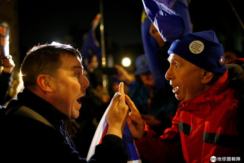 本月 13號,留歐派和脫歐派在倫敦國會大廈外起了爭執,雙方誰也不讓誰。